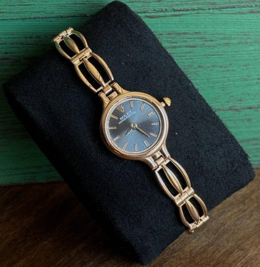 ساعت رولکس طلا طرح بند خطی رنگ قاب آبی نفتیAJ4840